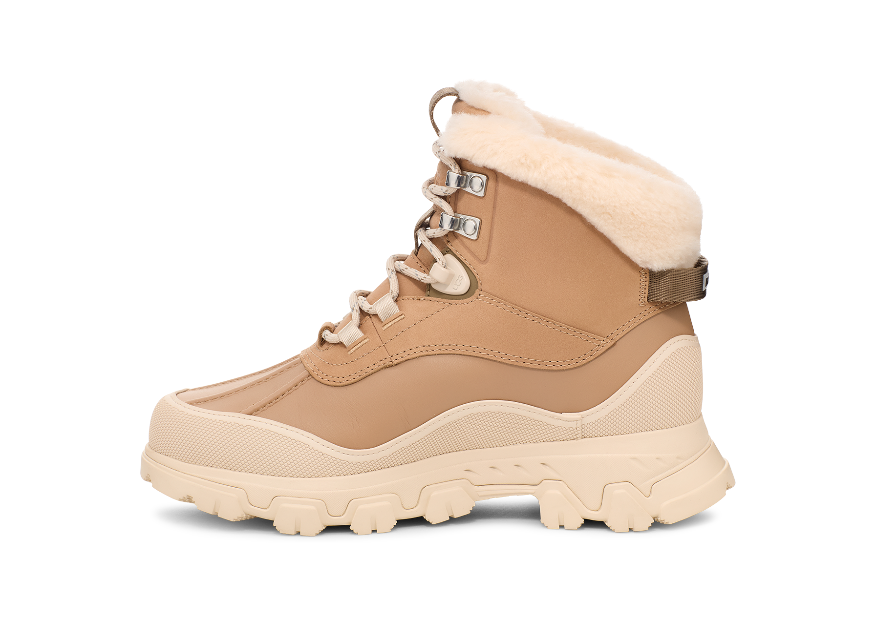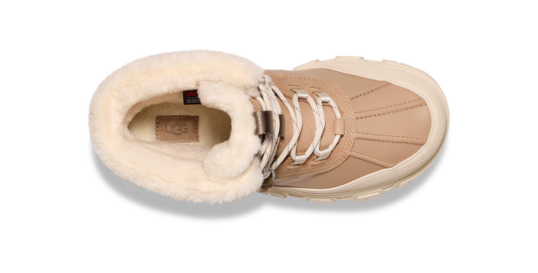 Winter should be fun. So, let’s get started: The shorter version of our new Adirondack Meridian offers extreme protection against cold and wet weather conditions, rated to withstand temps as low as -32˚C. The waterproof upper and gusseted tongue keep wetness out, while the high-tech GORE-TEX interior lets skin breathe. Featuring an asymmetrical topline that allows for more ankle flex for your next trek. Our signature snuggly UGGplush™ upcycled wool blend in the liner and sockliner offers unparalleled warmth and coziness in harsh conditions. The Vibram® outsole features ICETREK compound for enhanced traction on slippery or icy surfaces, from the streets to the slopes.