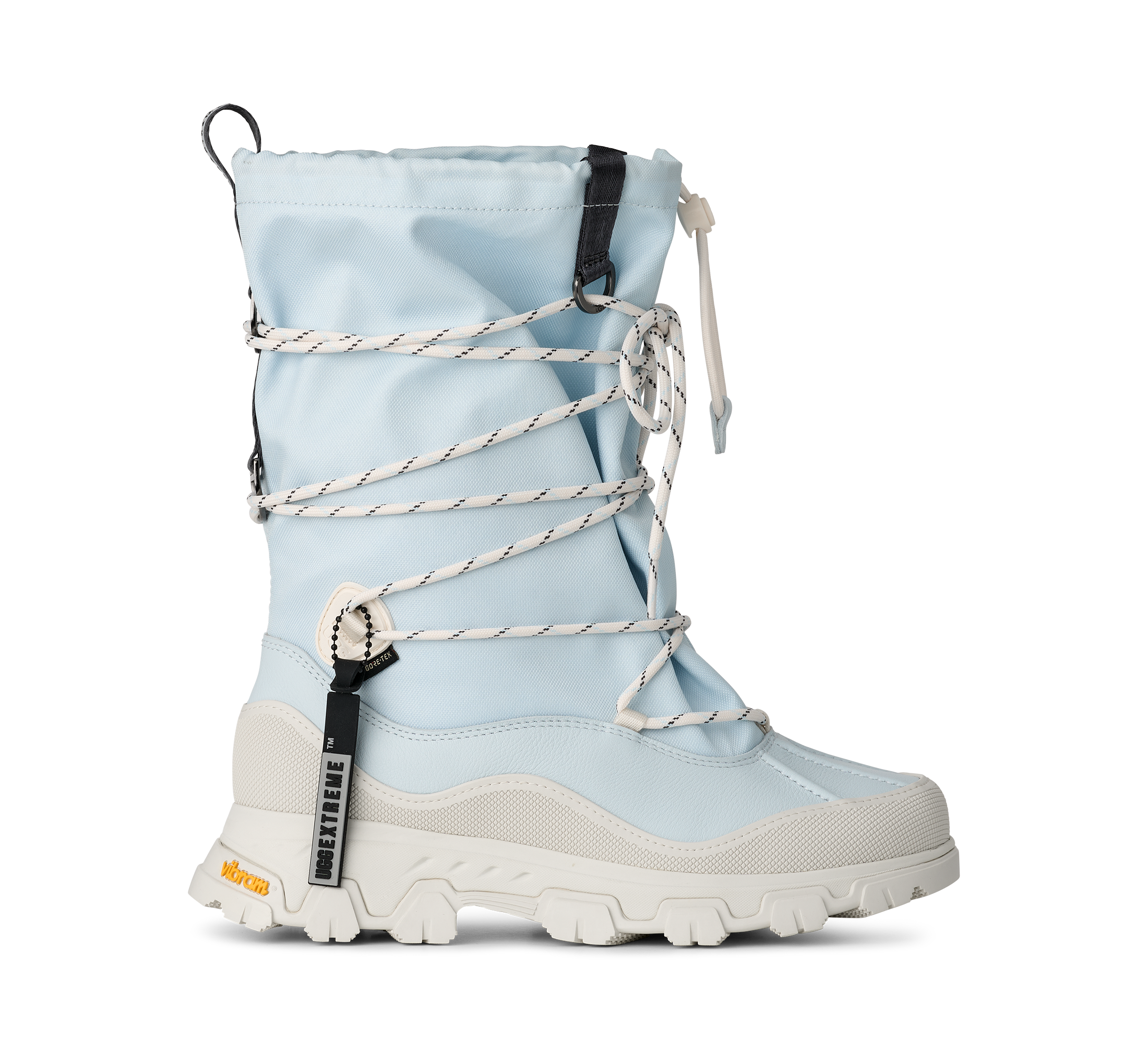The UGG® Logo, embossed, UGGextreme™ reflective silver TPU print on webbing heel pull, Woven label with The UGG® Logo on insole, GORE-TEX woven label