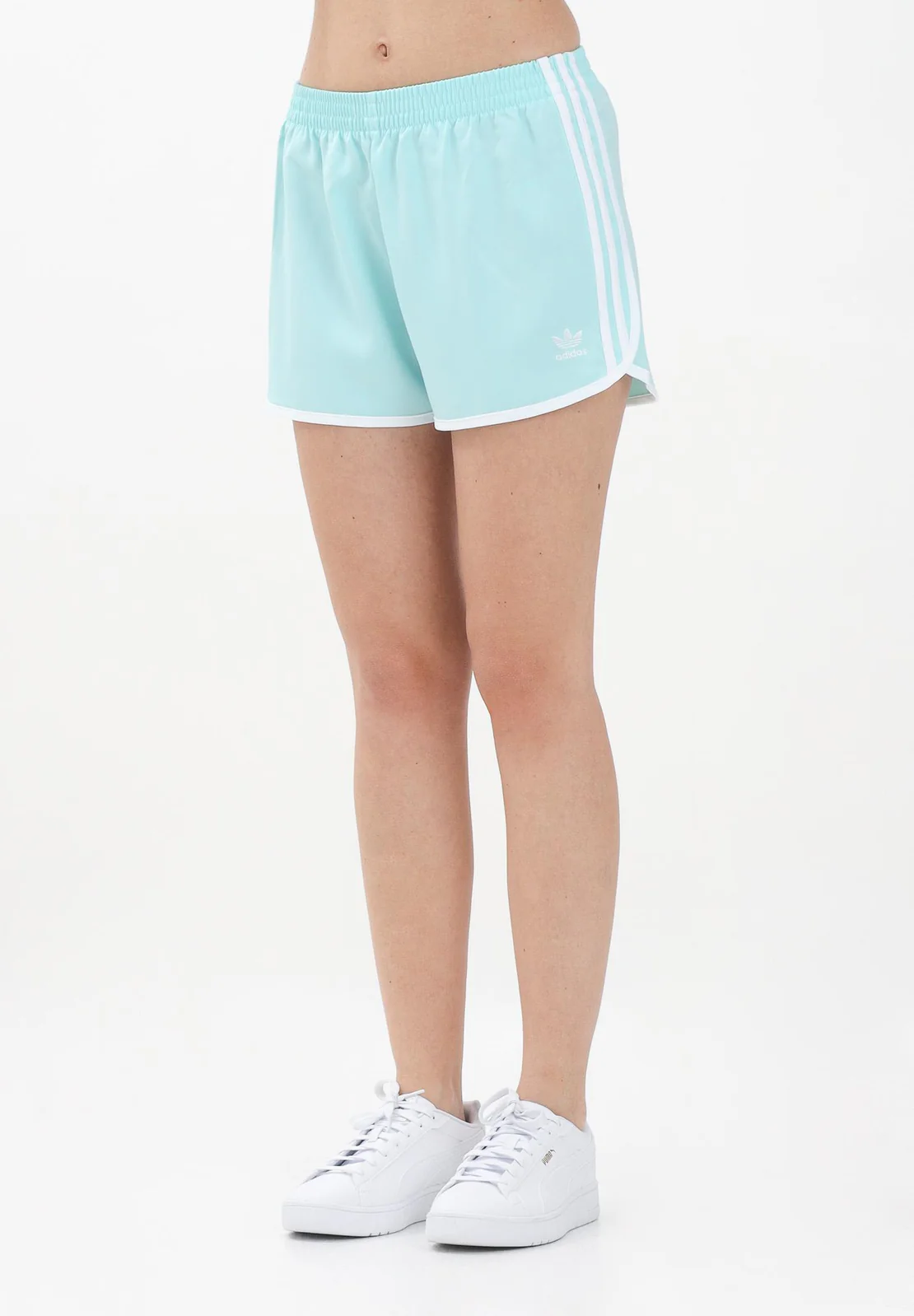 ADIDAS ORIGINALS Women’s Adicolor 3-Stripes Sprinter Sports Shorts in Turquoise. No matter how hectic your day gets, these sprinter shorts from adidas can keep up. Their loose fit and sleek construction give them the look you need for everything from running errands to lounging around the house. Distinctive 3-Stripes down the sides and a Trefoil logo on the leg pay homage to the sporting heritage. The model is wearing a size S and is 170cm tall. Wash and iron at medium temperature. Spring/Summer season.