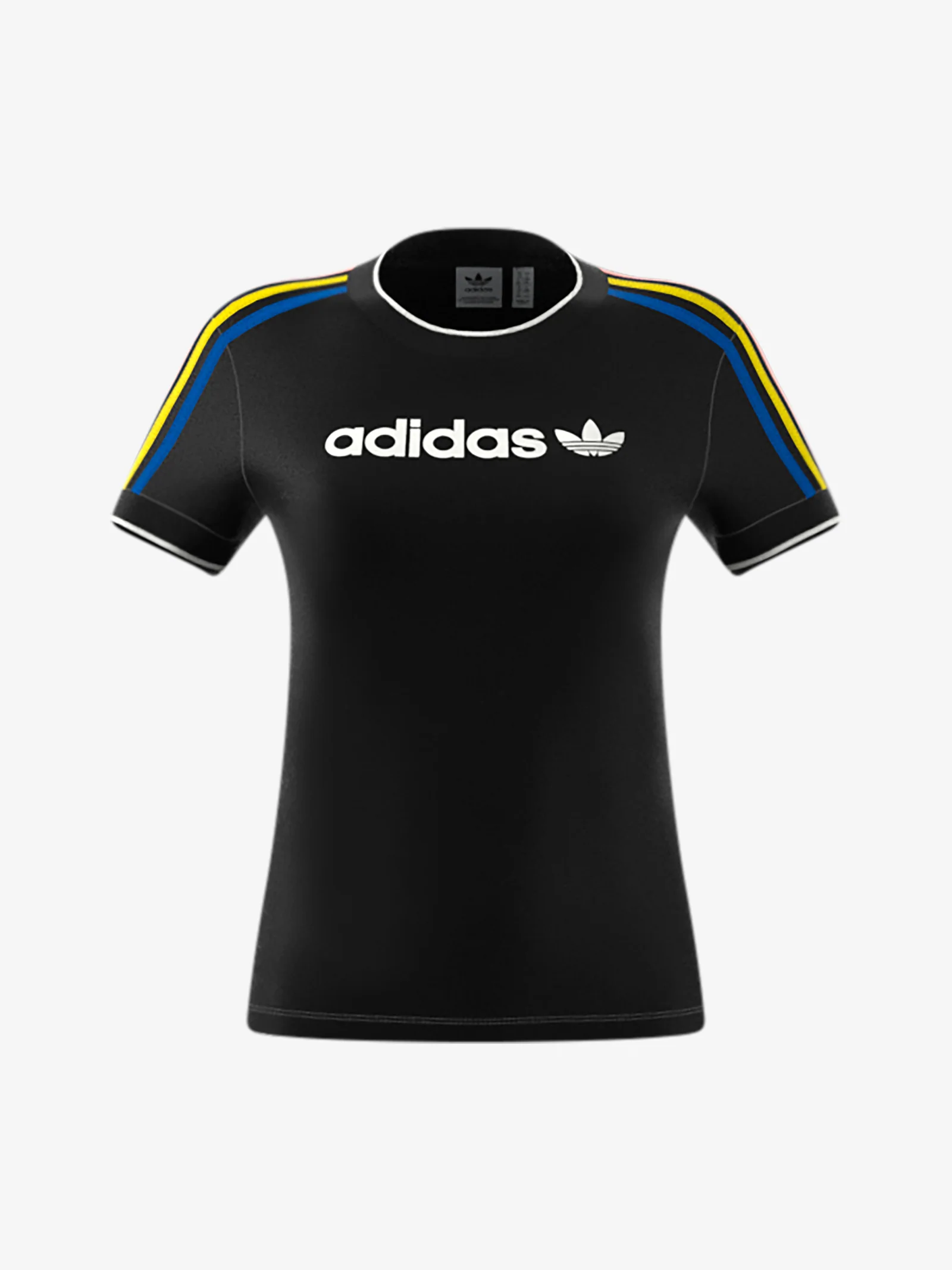 ADIDAS ORIGINALS Linear Logo 3-Stripes Women’s Short Sleeve T-Shirt in Black. This tee shows your adidas pride front and center with a contrasting adidas linear logo. Its soft cotton jersey fabric keeps you comfortable whether you’re running errands or chilling with friends. A slim fit hugs the body for a smart, casual look. Model wears a size S and is 170cm tall. Recommended washing and ironing at medium temperature. Spring/Summer season.