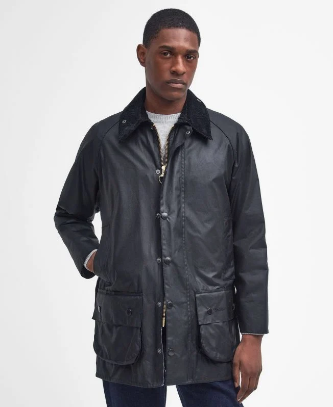 Designed in 1983, the Beaufort Jacket was initially created by Chairman Dame Margaret Barbour and remains one of Barbour’s most iconic waxed jackets. Featuring the useful full-width, lined, rear pocket, this jacket is fully interactive with a detachable hood and liner. The Beaufort truly is the ultimate, classic all-year-round jacket which is effortlessly made with medium weight 6oz Thornproof waxed cotton and featuring Velcro wind cuffs and the recognisable studded corduroy collar. The relaxed-fit jacket features a chunky two-way Barbour ring-pull zip and studded ‘Stormfly’ close front, two generous bellows pockets and two waist-height moleskin hand warmer pockets for everyday practicality. Inspired by French shooting jackets, the Beaufort is a shorter length than traditional jackets, and carries a large rear pocket lined with wipe-clean Nylon. While older Beauforts carry the Dress Gordon tartan, the modern Beaufort is lined with the Classic Barbour tartan, which is based on the tartan sett from the Barbour family’s original home county of Ayrshire.
