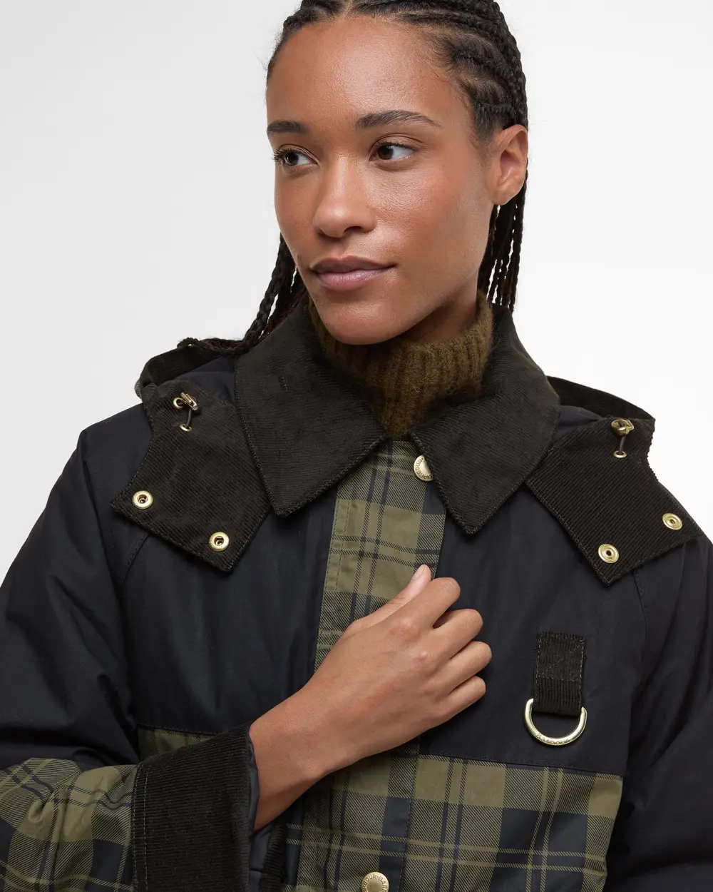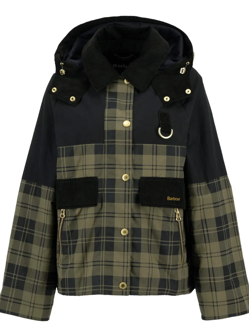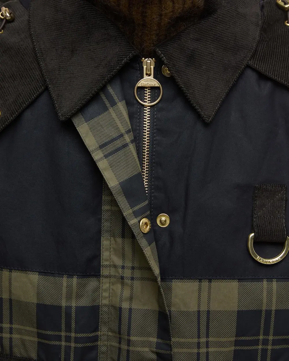 Inspired by our iconic Spey jacket, the Barbour Elaine Showerproof Jacket has you covered. Featuring a patchwork of tartan, cord and plain panels paired with a lightly insulated snorkel hood, handwarmer pockets and cord trims for a classic Barbour look.