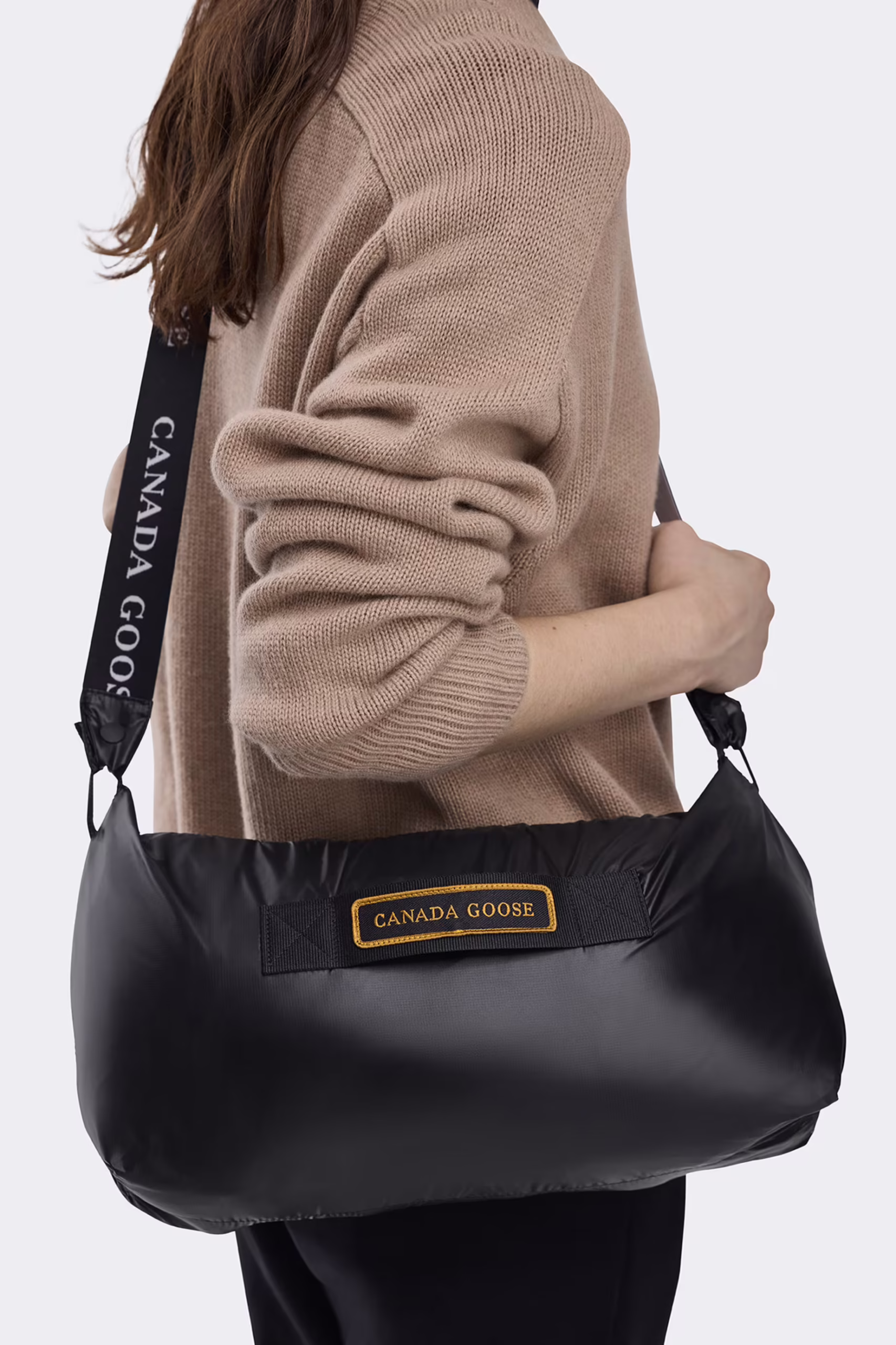 Packable into interior left pocket. Converts into a cinchable bag with a carrying strap