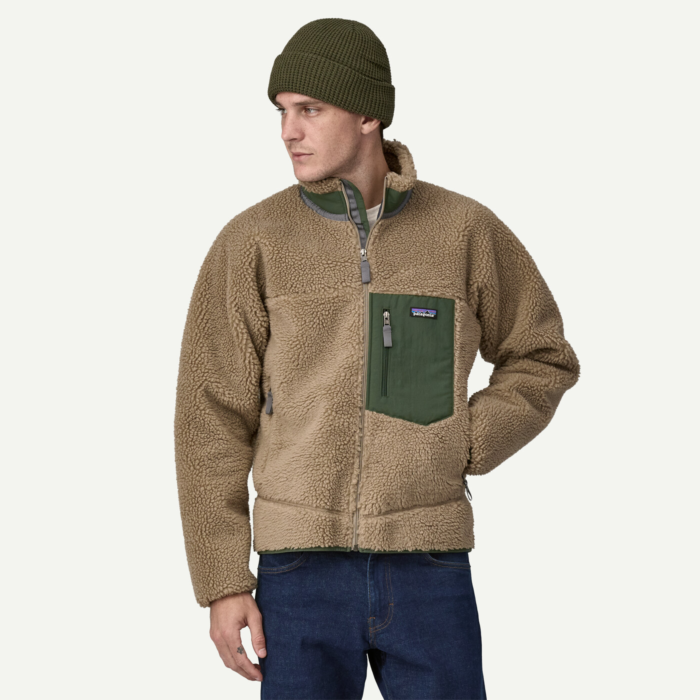One vertical-zippered left-chest pocket is made of 100% recycled nylon faille contrast fabric, and two zippered handwarmer pockets are lined with 100% recycled polyester tricot mesh