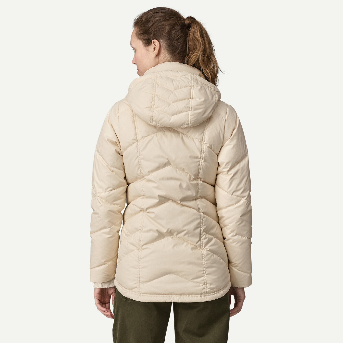 Chevron-inspired baffles create a modern silhouette with princess seams in the front and back for shaping and a warm, contoured fit