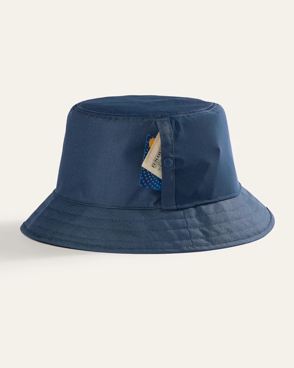 Designed for versatility and outdoor durability, this reversible bucket hat is part of the Explorer Collection, crafted with elevated, water-resistant materials built for adventure. Made from sturdy ripstop with a recycled polyester lining, it offers lightweight comfort and dependable performance. Reversible, packable and easy to stow, it features stretch construction for a secure, comfortable fit—ideal for travel, trail days, and everyday wear. Hidden snap pocket for keeping things tucked away.