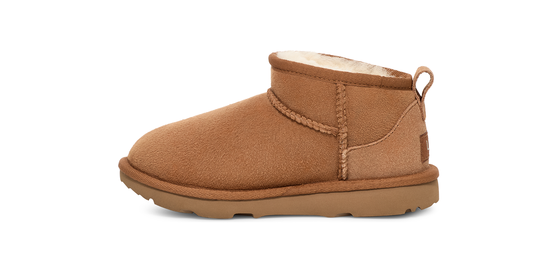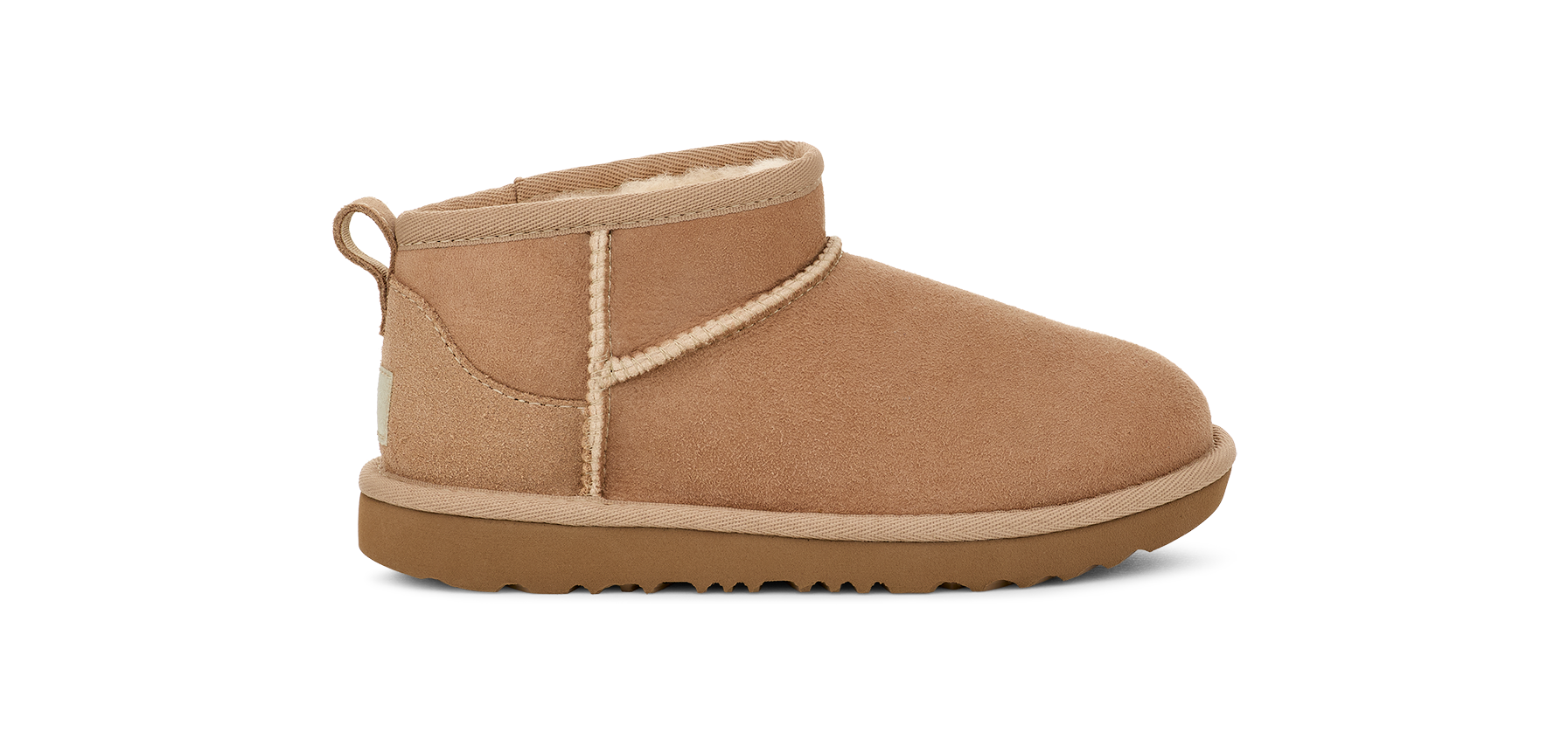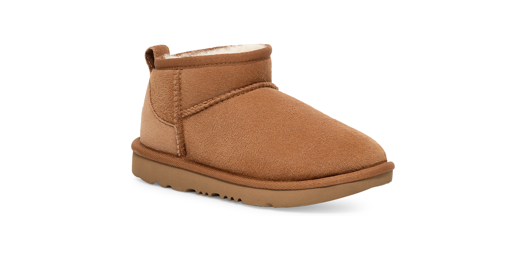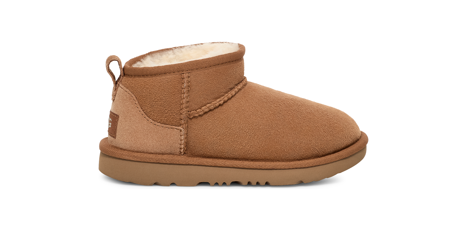 Our Classic Ultra Mini features a low shaft height, adding easy on-off and enhanced versatility. Pre-treated to keep it looking better for longer, this Classic features everything kids love about the original: signature sheepskin lining, an ultra-soft UGGplush™ insole, and a flexible, ultra-lightweight sole made for all-day play. Pair with our matching adult-sized boot for cute mini-me photo ops.
