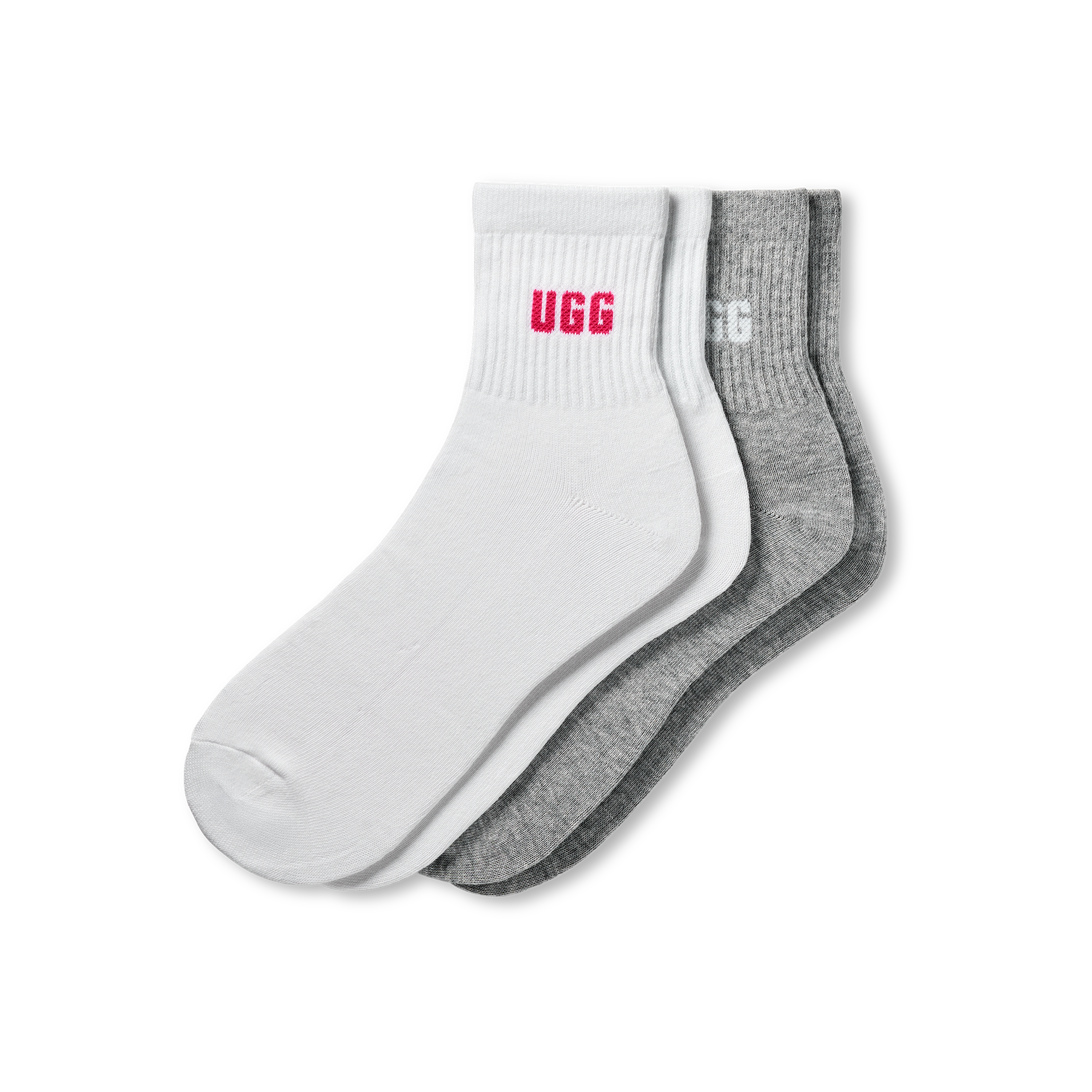 Double the pairs, double the comfort. Our Quinlin Logo Quarter 2 Pack is an essential set of quarter-length socks crafted with a soft cotton blend from Responsible Cotton and finished with The Graphic UGG® Font.